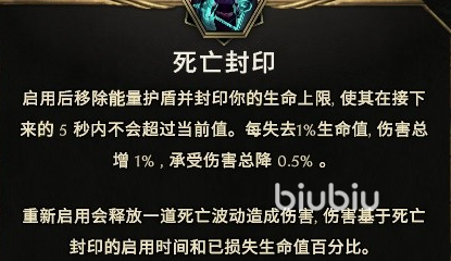 首先就是死亡封印,属于护盾技能,高等级状态下在血量降低到30%的时候,能够减免35%的伤害,并且还有护盾,这样就可以保证有一定的保命能力。