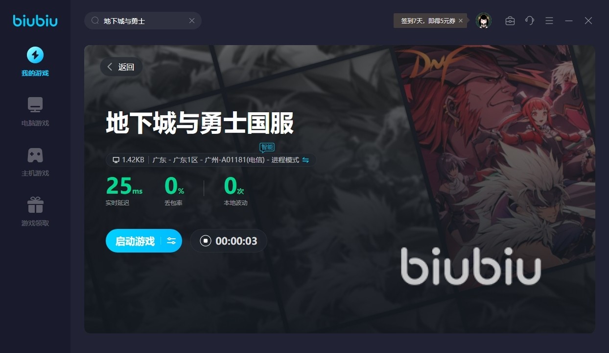 2024年03月28日 18:13 来源:先锋本火恐龙很多玩家对于dnf这款游戏还是非常喜欢的,作为横版的2D风格玩法游戏,它除了能为大家带来刺激的战斗外,在玩法方面也很是丰富,还有团队副本等给到大家,下面和大家说下地下城与勇士卡顿怎么解决,各位要是遇到了游戏环境不稳定,fps波动很大的情况,那么利用biubiu来针对自身的网络进行稳定就很关键,大家有想法就接着往下看吧。