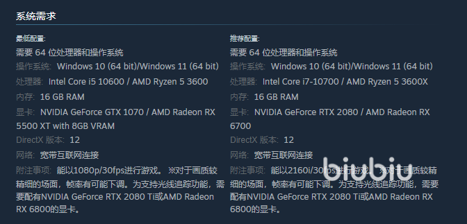 那这么好玩的游戏对电脑的要求高吗?根据下图我们可以发现此游戏的优化做的还是不错的,因此配置也不算太低,10代的i5和i7配上1070或者2080左右的显卡就可以畅快游玩了,但是要想以更高特效运行的话就得使用2080TI了,这应属于中高配的电脑了,现在的主流电脑以高特效游玩是没问题的。