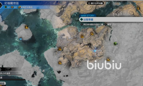首先要先进入尼福尔地区,来到下图标记的地方找到委托人鸟仙人。进入过场动画后简单的和NPC聊天得知,希蕾娜是一只海陆行鸟。它能乘风破浪水性极佳,但是脾气很古怪鸟仙人也拿它没有办法,所以让我们去把它抓捕回来。
