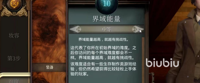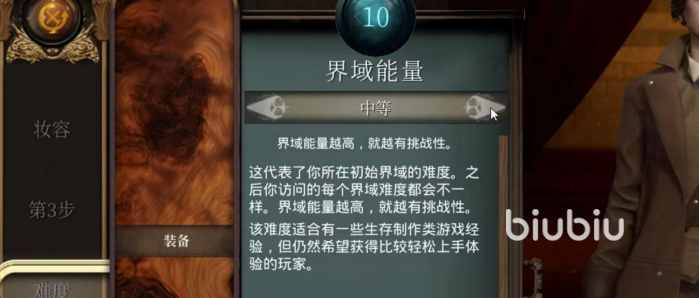 新手玩家建议可以选择界域能量为1-10的简单难度,更有利于玩家熟悉游戏机制玩法。再往上的难度分别为中等、困难和极限。