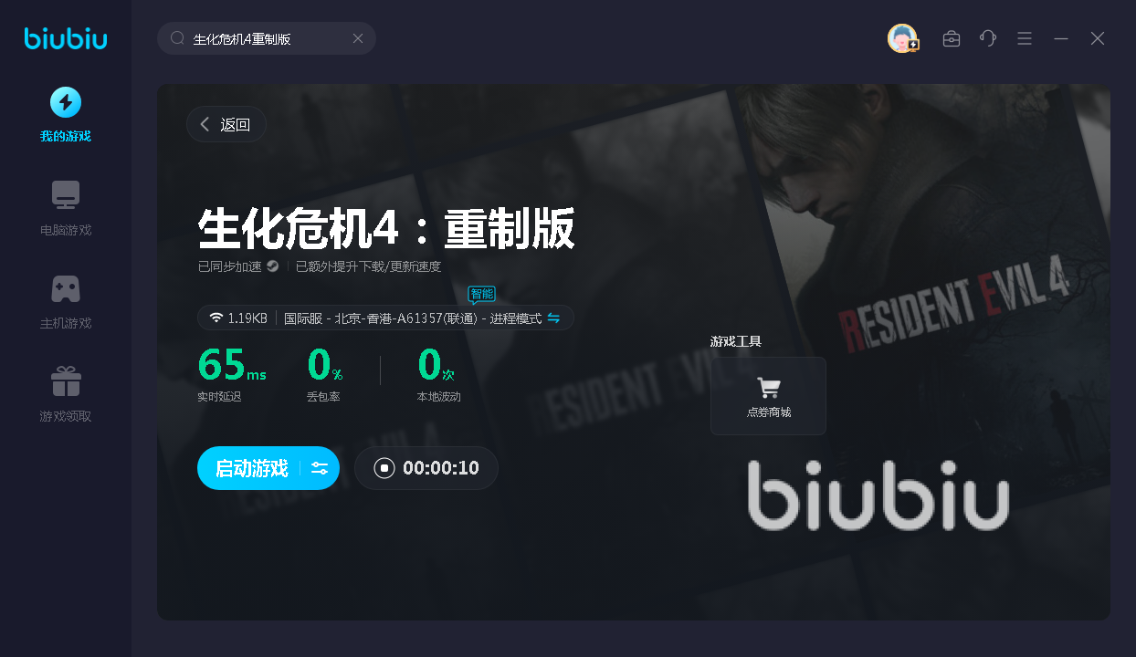 游戏的剧情可以说是非常的紧凑,玩家们一定要保证自己的网络足够的顺畅,如果是在普通网络环境下体验的话,很容易会出现网络卡顿的情况,在关键时候无法顺利完成任务,被丧尸击杀。为了减少这种情况的发生,建议大家提前准备一个biubiu加速器,这款加速软件无论是口碑还是使用效果都是一流的,它能直接对当前网速进行加速处理,拥有专线加速连接,能够快速的改善当前网络状态。玩家可直接在biubiu内搜索生化危机4重置版即可找到对应的游戏,将其添加到游戏库内就可快速开启加速了。除了PC游戏之外,主机游戏也是可以直接体验的,而且主机游戏当前还处于限免状态,可以帮助小伙伴们更好的参与游戏竞技。