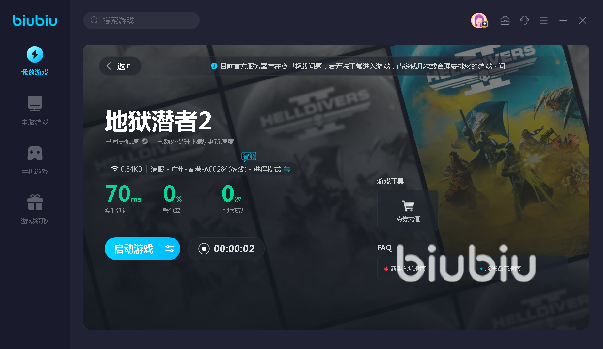 以上就是关于绝地潜兵2掉线频繁怎么办的方法介绍了,可以说这款游戏目前的热度还是比较高的,玩家可以直接通过steam平台来进行登录,加速之后大家无论是下载还是更新都能更快的完成,进入游戏之后也能做到稳定不卡顿。玩家们如果想要邀请好友一起联机的话,也能更好的完成战斗,有效的避免了延迟、卡顿、掉线等网络问题的发生,如果大家对这个游戏感兴趣,那么就快来选择biubiu体验吧。