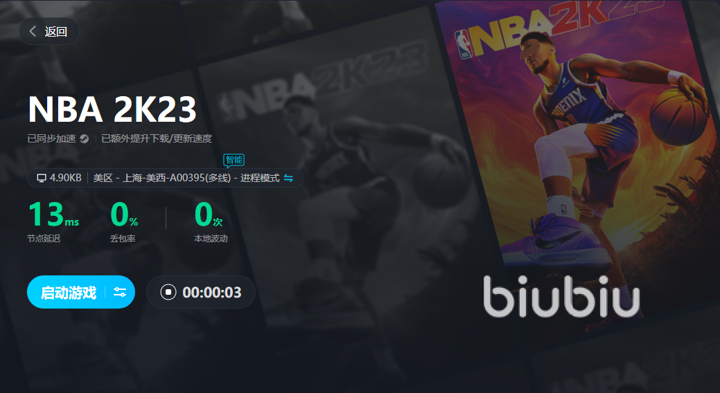 2024年03月29日 18:27 来源:沙王至吸盘魔偶《NBA 2K23》这款游戏嘛,可是篮球迷们的福音呢!它是一款篮球模拟游戏,以其出色的画面、逼真的球员动作和深度的游戏玩法而备受赞誉。但是2k23更新后闪退怎么办呢,因为这款游戏的更新还是蛮多的,常常会有更新闪退的现象,这就需要一款加速器了,小编给大家推荐的是biubiu加速器,这款加速器可以很好的改善2k23的更新闪退问题,给大家一个完美的游戏环境。