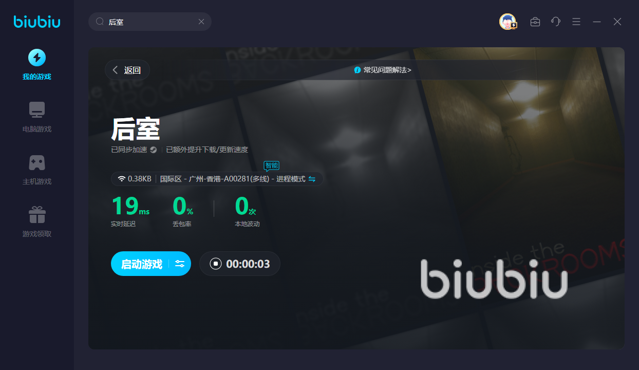 此外,后室中的大部分关卡都是肉鸽玩法。若是中途掉线就需要重启游戏,并从头开始解谜。好在biubiu即可轻松hold住网络,无论玩了多久亦可避免掉线,一次通关不在话下。然后遇到一些不会解的谜题,亦可前往biubiu论坛上发布询问帖,就会有很多热醒网友为你答疑解惑。加速步骤也很简单,仅需点击开启便可开玩,暂停后则可为其他游戏提速。