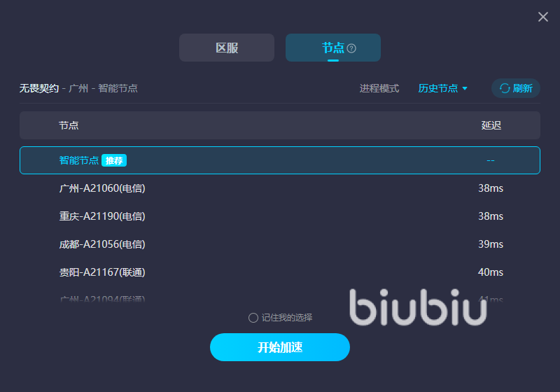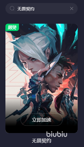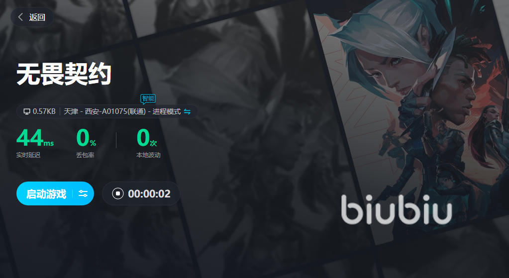 首先,玩家们要明白的一点就是掉帧卡顿的出现,往往都是因为网速不稳定而导致的。想要从此告别这类网络问题的话,小编就建议大家直接使用biubiu加速器来进行优化。网速在进行优化之后不仅会变得流畅,进入游戏里面战斗也不用再担心突然出现的卡顿而导致战斗失利。同时,目前无畏契约在biubiu中还属于限免游戏,玩家可直接体验免费加速的服务。