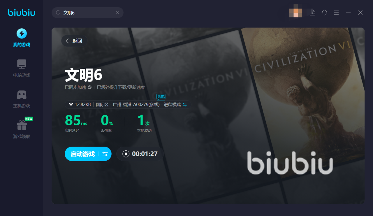 进入软件首页直接搜索文明6即可进入游戏专区,点击加速便可直接启动游戏了,直接通过软件就能启动游戏既节省时间又节省操作步骤,这样腾出来的时间就能更好的体验游戏带来的刺激了,加速服务之下体验游戏画面也更加清晰了,网络不稳定和卡顿掉线等情况也得到了有效的解决,包括延迟率、波动和丢包率等信息也能直接看到,方便大家了解自己的网络状况,当有波动情况第一时间重连。