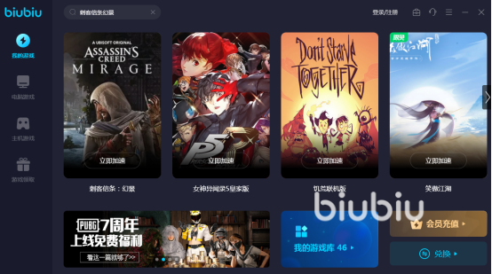 通过将biubiu加速器下载到电脑桌面上以后,不管是喜欢玩刺客信条幻景,还是玩家比较喜欢玩其他的类型,只要游戏是正版的,不管是国内外全部都支持、加速方法非常的简单,只要进入应用以后将游戏的名称输入其中就可以了,有效解决网络延迟的问题,或者是掉线卡顿等,可让游戏玩家整个过程更流畅。