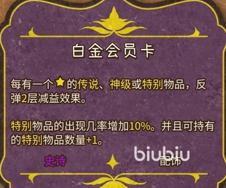用两张普通会员卡就可以合成白金会员卡了,只要包裹里面有一个1星传说,神级或者特别的物品,就可以反弹2层减益效果给对手,还能够增加10%的特别物品出现概率,可持有数量也会增加1。