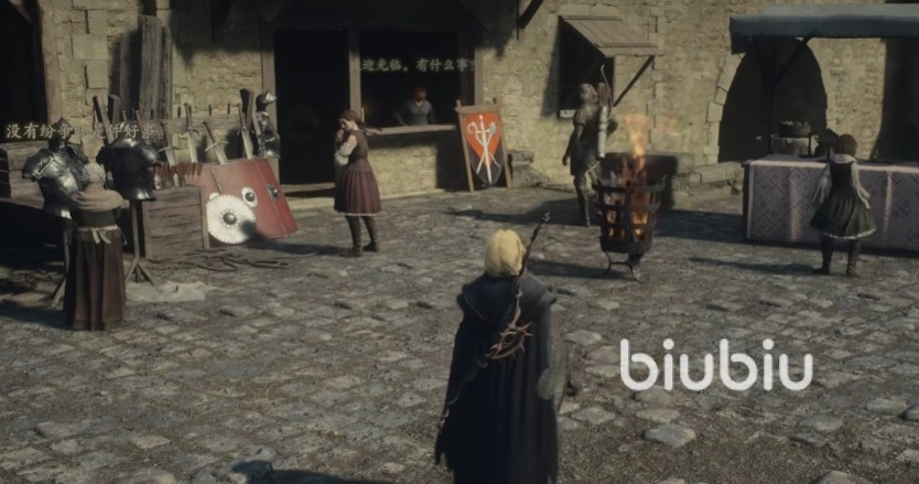 准备好了之后就可以来到维纶沃斯城的武器店,可以看到这里有一个男精灵,上去交互就知道他叫做格林多尔。虽然他是精灵族,但是箭法不是特别精湛,又要参加弓之试炼,就邀请玩家一起进行练习。