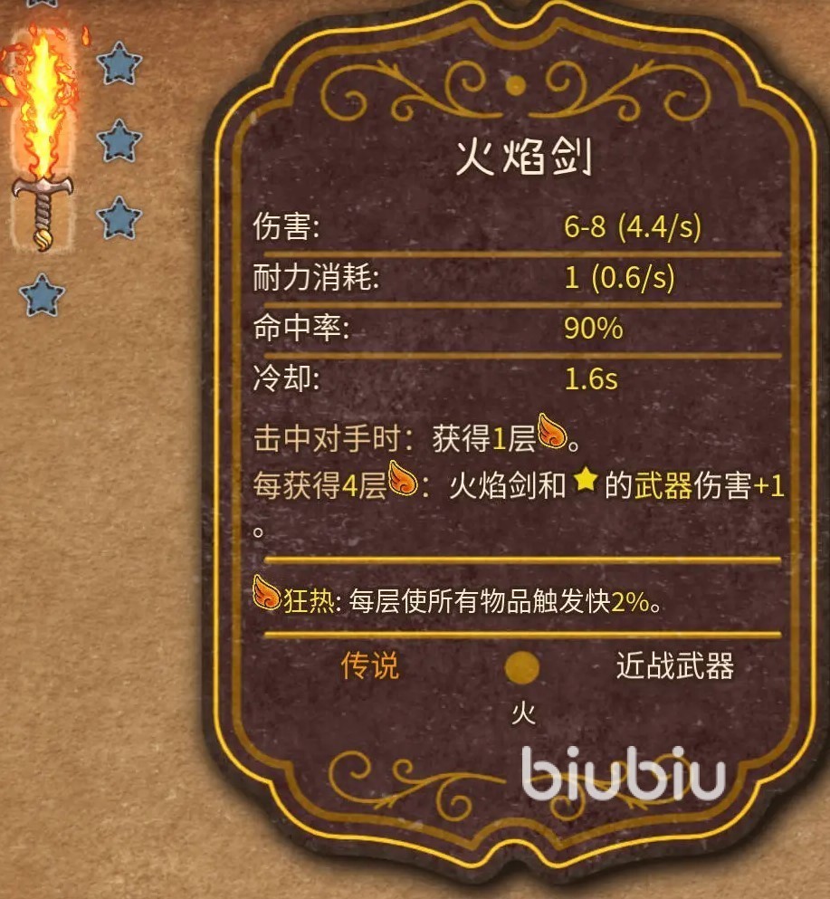 这套玩法需要叠加狂热被动,所以玩家前期要先合成火焰短剑。火焰短剑的合成方式需要一把木剑加上两个磨刀石合成勇者之剑,然后用勇者之剑加两个火焰即可合成火焰短剑。如果磨刀石多的话也可以跟火焰短剑合成火焰剑。