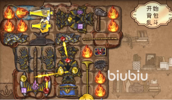 前期如果有会员卡可以拿一张,加快搜斧子的速度。过程中如果有防具或者武器都可以拿上,放在锻造锤子旁边进行锻造。一定要在第八回合之前打出战斧,否则不出意外,就需要重新开一局了。等到第八回合,我们拿上铁匠,也就是铁砧,将它放在中间,其他装备围着它进行摆放。这套打法需要两个龙爪,两个龙鳞护甲,两个龙鳞靴,等做出双刃斧后就是强势期了。之后,我们就是找宝石,找装备,提高我们的战斗力。