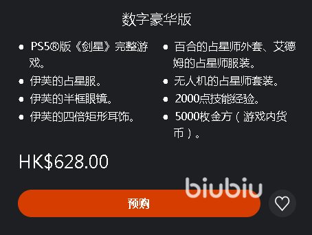 豪华版需要628港币,虽然这款游戏没有剧情DLC,但是豪华版会送你占星题材的服装和一套配饰。此外你的队友百合与跟班机器无人机也有该主题的外观,另外还有2000技能经验和5000无人机货币。