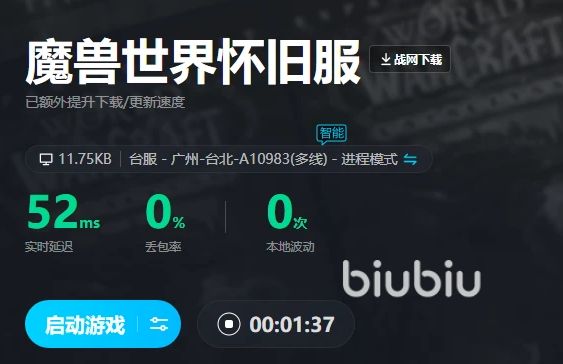 魔兽世界怀旧服发布之际,每天晚上在线人数甚至要比正式服更高,即便说大家没有道具、资产,但光靠最原汁原味地游戏模式,一样也能让人彻夜未眠,就算是很多刚刚打算体验魔兽世界的萌新玩家,也会在首选上加入怀旧服,但因为没有经验的原因,不开加速器打团走两步就掉线,在争夺重要资源的时候总是因为卡顿、闪退掉点来耽误整个团队,要是不想因为自己一个人而错失整场对局的话,就让biubiu加速器来保护你的游戏环境。