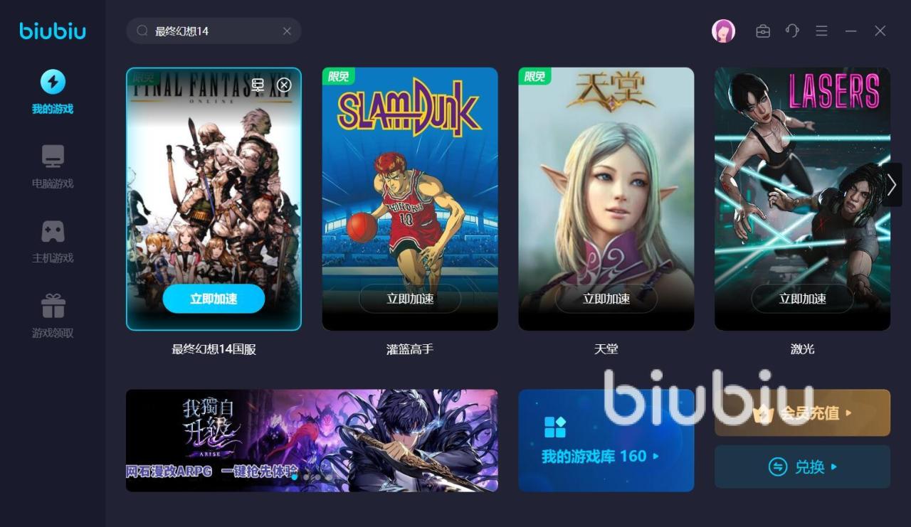 biubiu加速器不仅功能强大,而且操作起来也很轻松,在搜索框内输入游戏名称,就能找到对应的加速入口,接着将其放到主界面,以后再给其加速就方便多了。此外,平台还为大家准备了丰富的福利,针对还未体验过该软件的新用户,平台会赠送24小时免费的加速时长,还有一个福利是适用于所有人的,大家只要在软件中使用兑换码【biubiu不卡顿】,就能领取3天的免费加速时长,畅玩各类热门游戏。