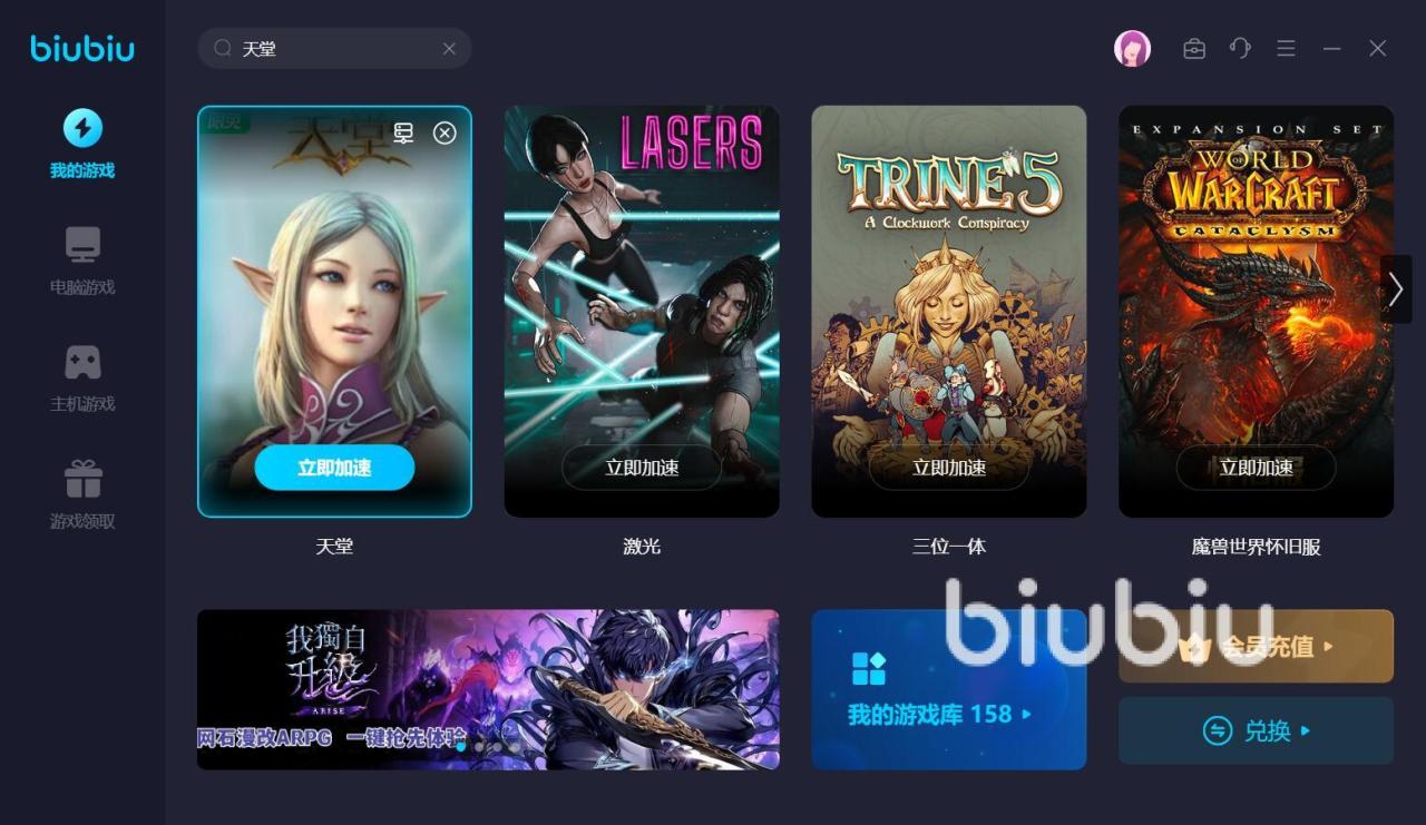 以上就是天堂延迟不稳定怎么办,这款游戏的画面、音效以及玩法设计的都很用心,大家不仅能在其中享受到游戏的乐趣,还有机会结交到朋友。biubiu加速器内高效优质的加速服务,可以带给各位丝滑的操作感觉。