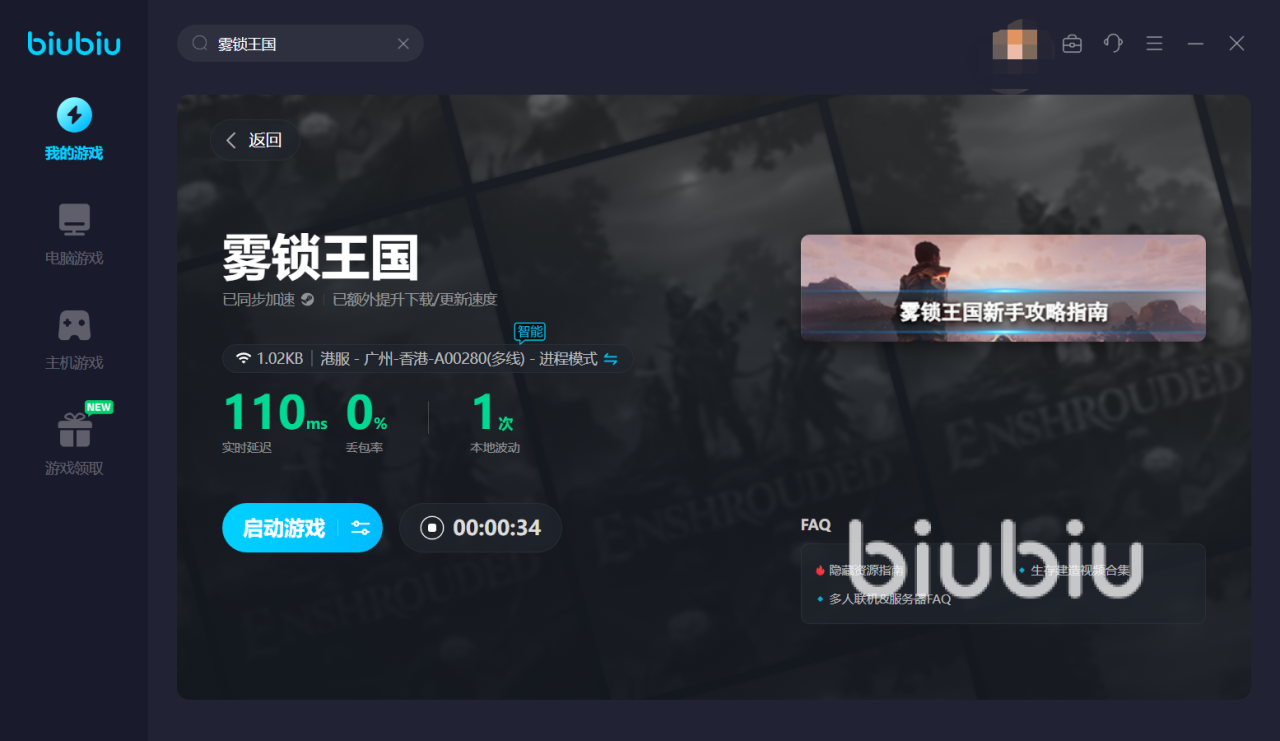 2024年04月07日 17:30 来源:撒旦旦嘟嘟利4开放世界的生存游戏一直以来都备受广大网友的关注,今天小编为大家带来的雾锁王国也是其中一款,那小伙伴们都知道雾锁王国加速器下载官方免费,在游戏当中你可以体验到的内容和玩法都非常丰富,大多玩家都被精致且庞大的世界观所吸引,都想入坑体验一下这个游戏,但游戏体验过程中遇到的卡顿和掉线现象都使很多玩家极度崩溃,想要避免这些现象就要配合上biubiu加速器来使用。