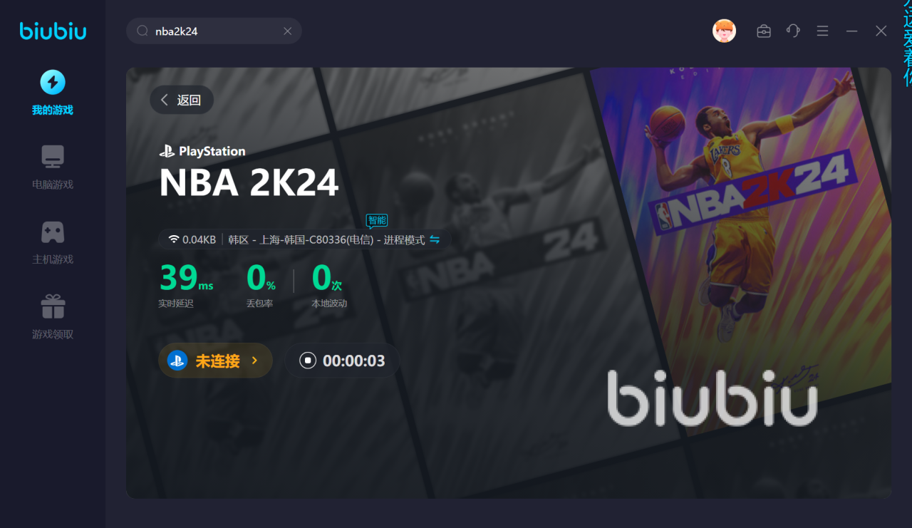 2024年04月07日 17:25 来源:月神立电击兽6NBA2K24是NBA 2K系列的最新续作,相较于传统版本,它有许多更新的地方。在游戏中,玩家可以模仿那些著名的球星参加篮球比赛。针对NBA2K24延迟不稳定怎么办,相信游玩这款游戏的玩家都会感兴趣。在游戏中,许多玩家发现在操作游戏角色进行篮球比赛时会出现网络高延迟的情况。然而,游戏网络的波动会导致玩家的操作手感下降。在这里,小编向大家推荐使用Biubiu加速器来提高网络状态,减少延迟、掉帧卡顿等情况的发生,从而提升游戏体验。