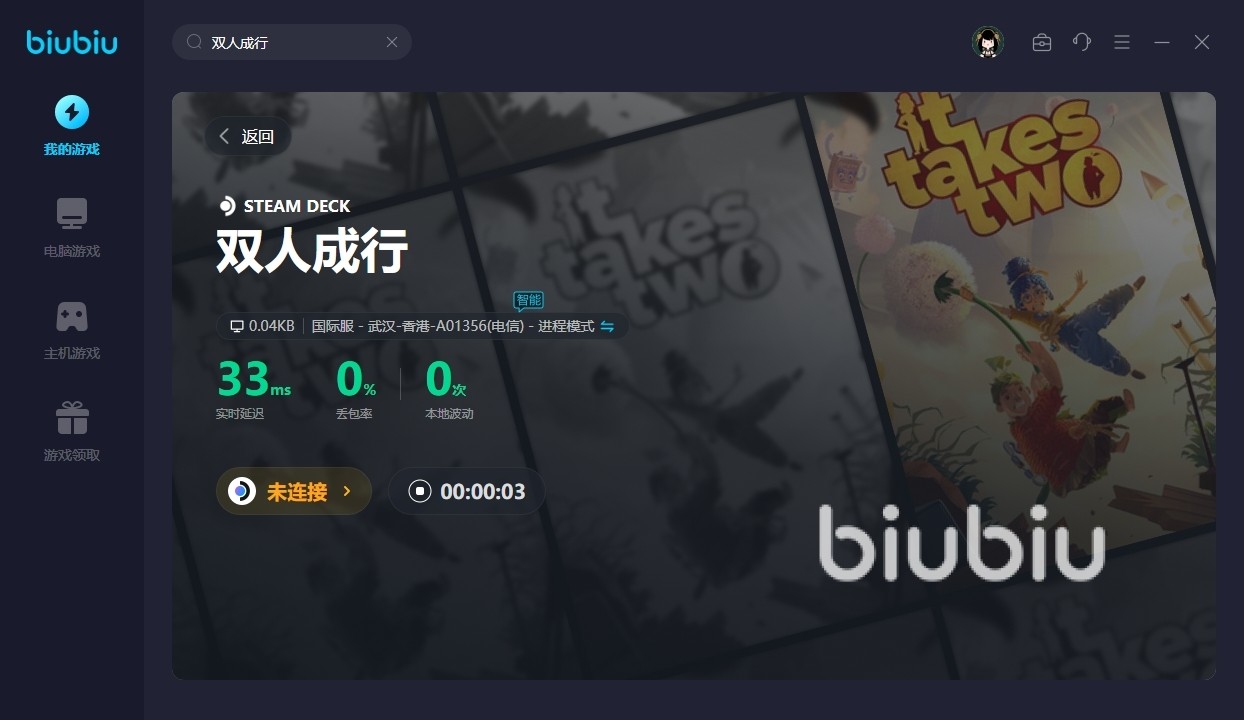 2024年04月07日 17:24 来源:撒旦飞超音蝠很多玩家对于这款多人玩法的游戏很是喜欢,在里面大家能体验到多种不同的模式,并且要求彼此合作才能完成,下面下编就和大家说说双人成行延迟高怎么解决,对于此类问题一般都是因为用户的网络环境太差所导致的,而想要去解决此类问题的话,可考虑去通过biubiu来进行稳定,作为专线级的加速工具,其效果也十分的突出,大家有想法的话,不如就一起来看看把。