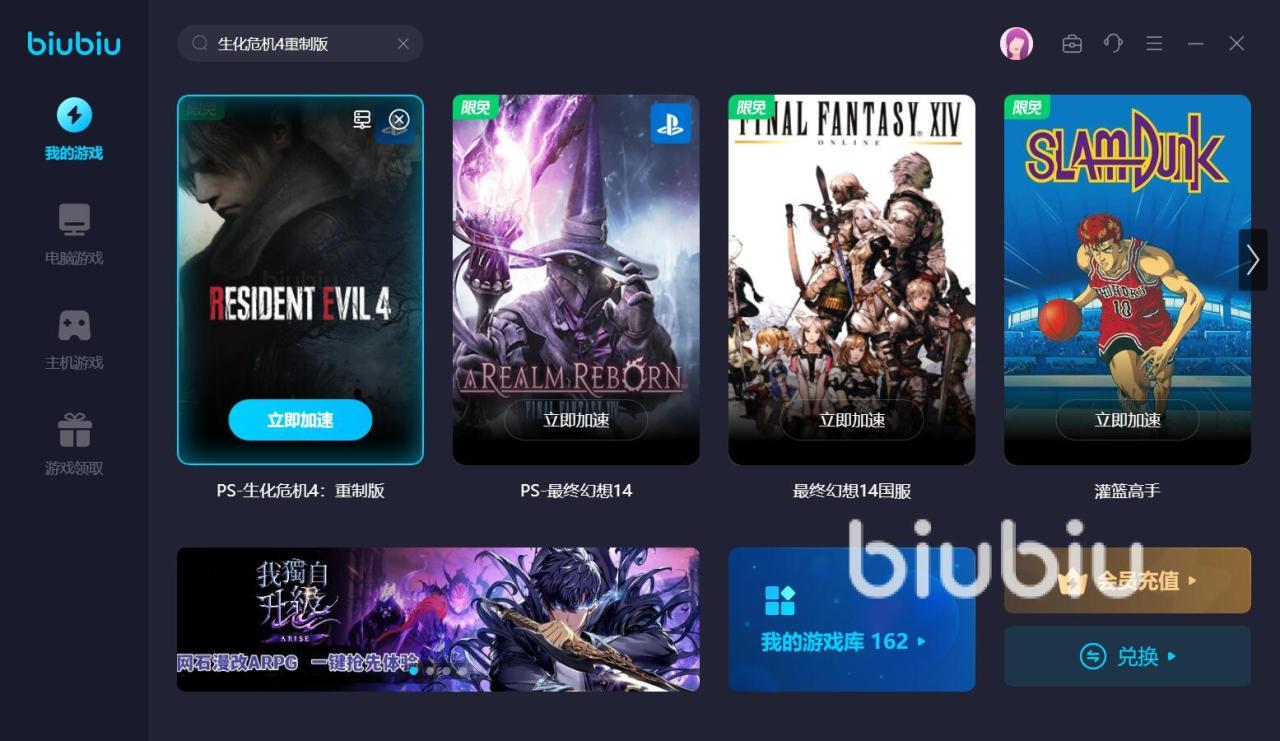 以上就是生化危机4重制版加速器有用吗,如果你习惯开全高画质玩的话,那么除了要有一个可靠的硬件外,还需要用专业软件去加速一下。特别是到了重要章节时,有biubiu加速器的优化,你就可以把注意力放到游戏中,更快地通过关卡。