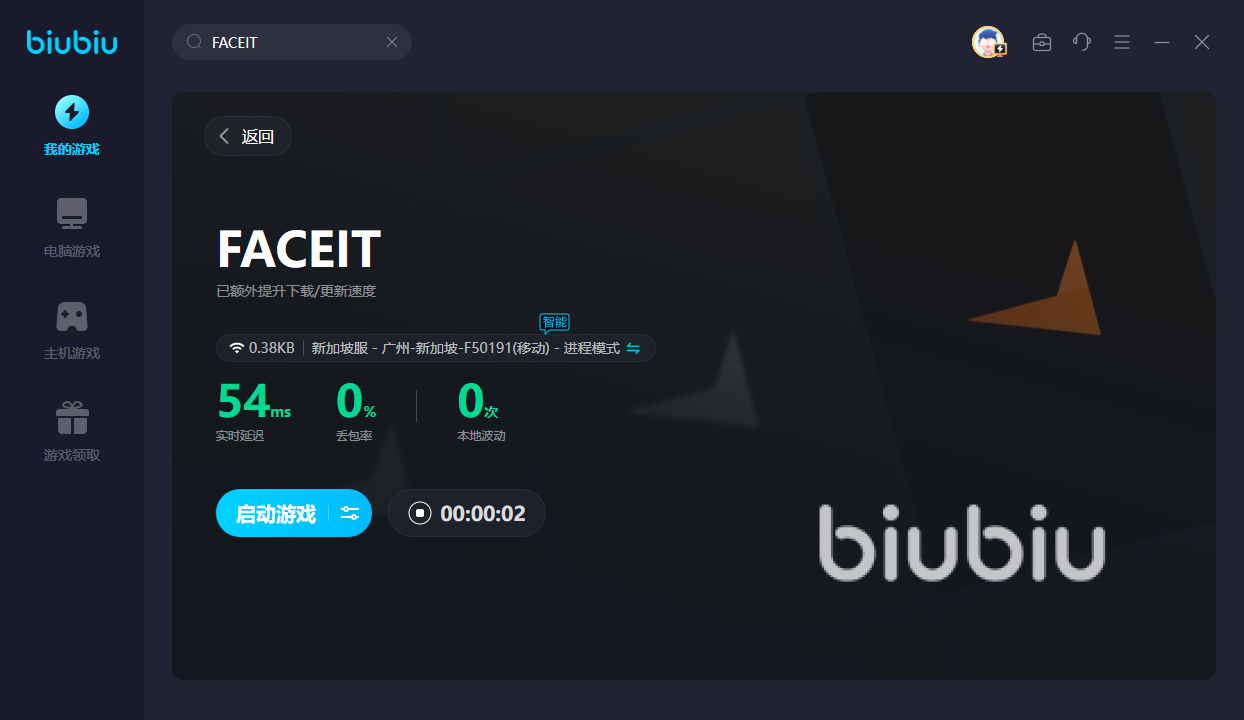想要在FACEIT平台上注册并登录的话,还得利用biubiu才行,因为该平台目前暂时没有国服。经过一番提速之后,便可随心所欲地与全球玩家切磋或者交流。新用户的话可领取24H的免费加速,此外新老用户即可输入【biubiu不卡顿】,便可继续畅享三天免费加速。如此一来,就能趁着这段时间跟更多的玩家一起对战,甚至运气好的话还能遇到职业选手!若是对战过程中卡的话,就不能加载游戏。还好该加速器优化后的网速很快,让你告别卡顿,顺利开启每一场战斗!