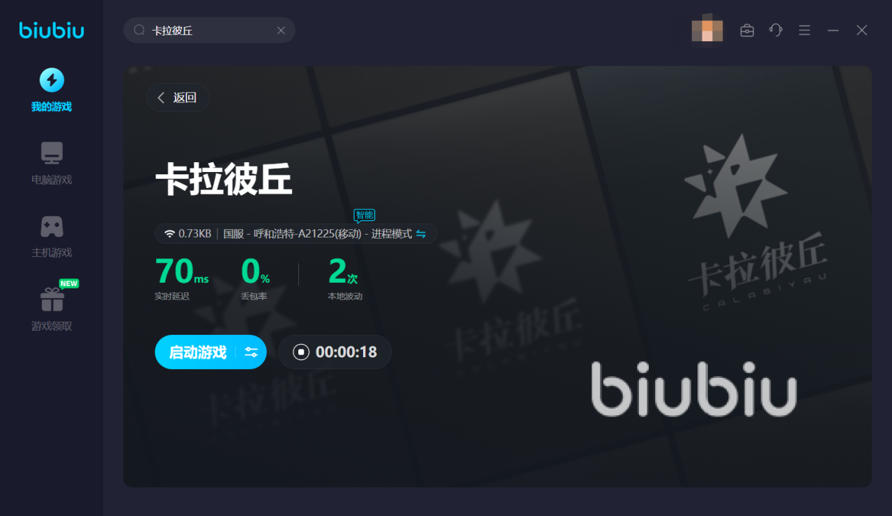 小编推荐大家在体验卡拉比丘的时候配合上biubiu加速器来使用,才能更好的体验新奇的剧情。它不仅仅支持对电脑游戏的加速,还可以对手机或者平板等设备进行加速。在使用过程中也是比较简单方便的,平台页面也没有很多花里胡哨的功能和广告,简洁直观,让大家轻松利用搜索引擎找到卡拉比丘游戏专区并点击一键加速,其他的好玩游戏操作也是如此,这样就能开启美好的游戏体验之旅了。