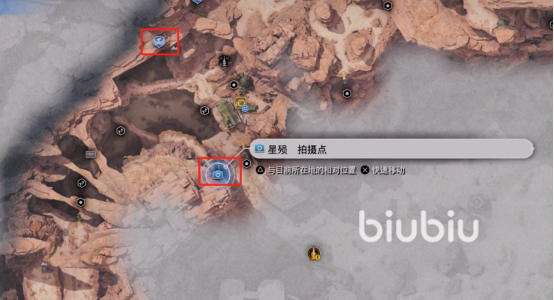 接着我们来到上面的位置,这里会有一个陆行鸟站牌,可以从任意的滑翔点飞到最下面的道路,走到尽头就能找到。随后来到右下角的星殒拍摄点拍一张照片给佛卡斯。