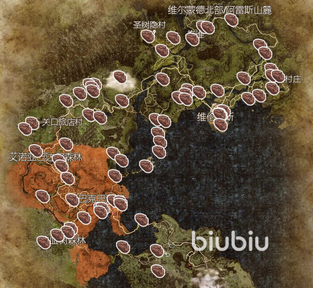 玩家可以去关口旅店的精品商店花5000金币买龙之信条碎片,三个就能合成一个完成的龙之脉动石,不过花钱的恐怕很多人都不愿意。你还能通过探索搜寻这些野外的碎片来进行合成,具体的位置你可以根据插图来对比,野外碎片多达72个,也就是可以合成出24个龙之脉动。