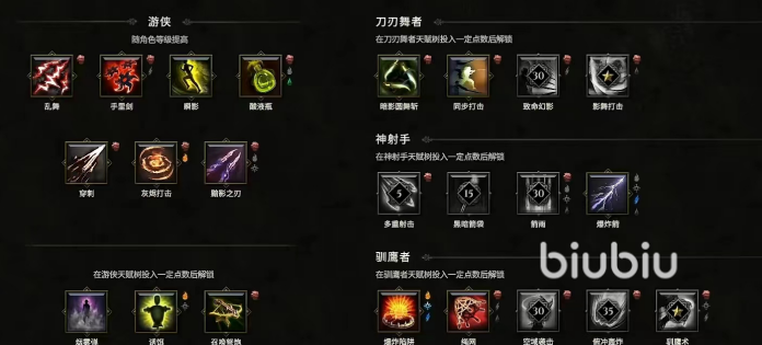 在天赋方面神箭手需要以伤害为主,这里大家按照伤害最顶的配置来点即可。在技能的选择上,爆炸箭肯定是要点的,除了伤害还要点回蓝,因为该流派的蓝耗很高,所以回蓝必不可少。转移作为位移技能点造影,烟雾弹与其他玩法一样点就行,黑暗箭袋粉碎抗性必点。大型神像必须有元素抗性,祝福则需要爆伤、粉碎雷抗、全抗、耐伤等。