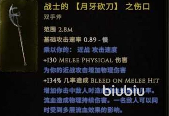 而且在装备的选择方面重点在于武器,我们应该选择月牙砍刀,它能提供伤害加成和流血几率。如果后期装备成型以后伤害值足够的话,可以将武器换成龙骨斧或者百格盾来增强自身的生存能力,当然了如果大家有自己的思路也是可以进行合理的搭配的。