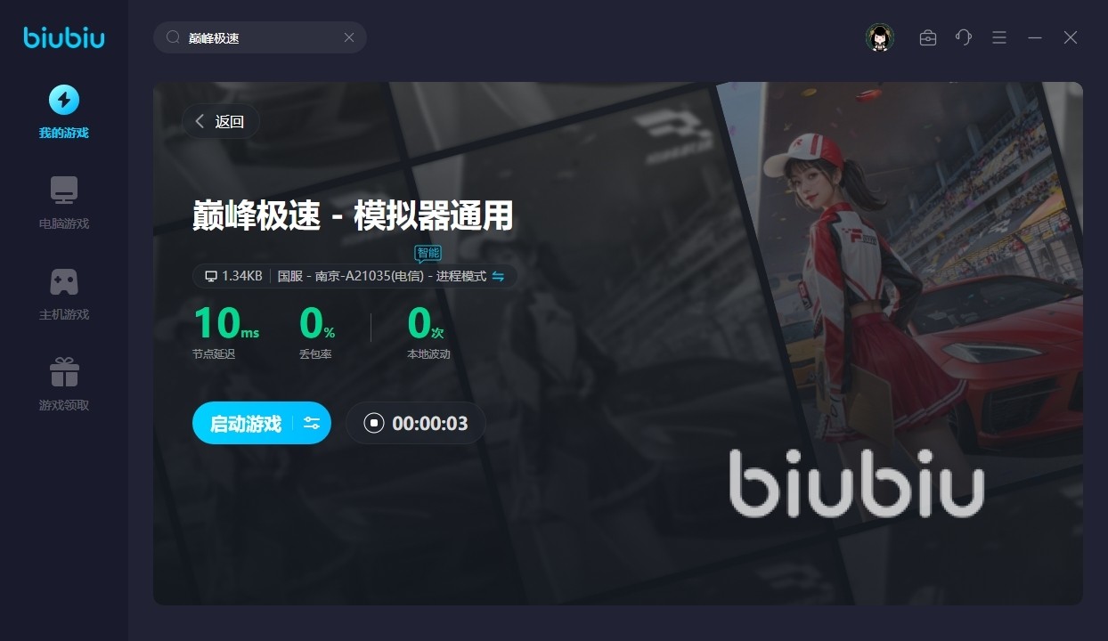 此外,biubiu还拥有一键加速的功能,对于一些初次使用还不是很熟悉的朋友而言就很友好了,各位只需去输入游戏名就能找到作品,也可把喜欢的游戏添加到库中,这样下次使用的时候只需去点击加速即可,大大方便了玩家的游戏加速。