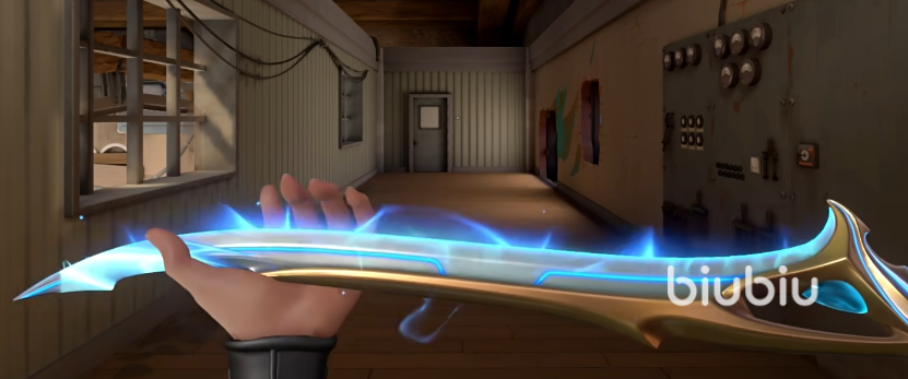 在检视直刀的时候,会有一个用手抚过刀刃的动作,随着手的动作,蓝光还会随着手指的移动而移动,另外加上切刀的时候挽刀花动作,用起来还是很酷的。