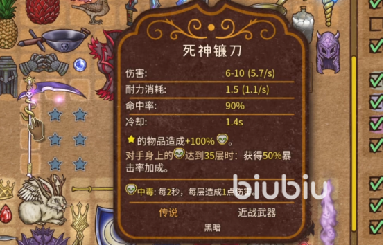 其次是收割者,有两个可以选择的套路,一个是黑暗剑,一个是叠毒。如果在转职之前,打折镰刀刷出来,我们就可以走叠毒,利用蛇蛇和剧毒黏黏,配合镰刀来达到三倍的中毒效果,如果没有就选择黑暗剑。