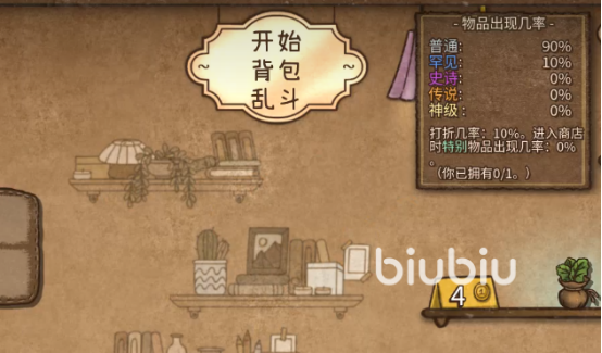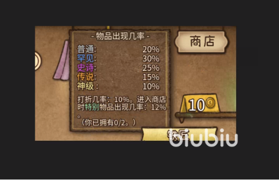 首先,商店每次都刷出新的物品时,玩家点击商店就会看到当下稀有度的几率,一开始我们只能刷出普通物品,等到后期刷出特别品的几率就会变得很高。每1局战斗,我们最多获得1个特殊物品。