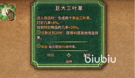 除了白金会员卡可以提升刷到特殊物品的概率,游戏中游侠的巨大三叶草也可以增加找到特殊物品的几率,可以增加20%,也就是说,如果我们有一张白金卡加上巨大三叶草,就能达到32%的出现概率。
