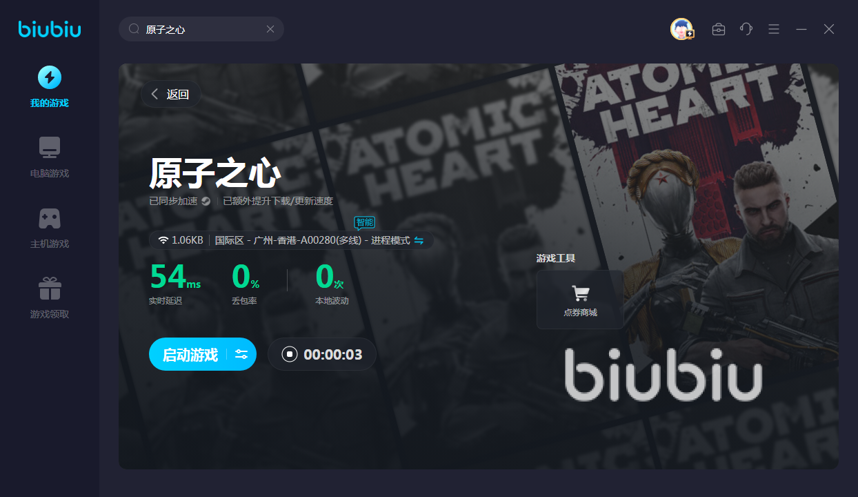 对于原子之心掉线是什么原因这个问题,相信大家也已经了解清楚,不过更重要的是搞清楚biubiu具体效果和现在的福利,如果大家想要使用,可以直接点击下载安装,然后利用这些赠送的加速时间感受效果,会对大家的游戏体验很有帮助。