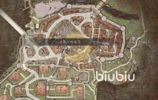 第三个位于沙基尔的旅店里,通过旅店二楼外的楼梯,来到房子的楼顶上,这里会有几个宝箱记得打开。