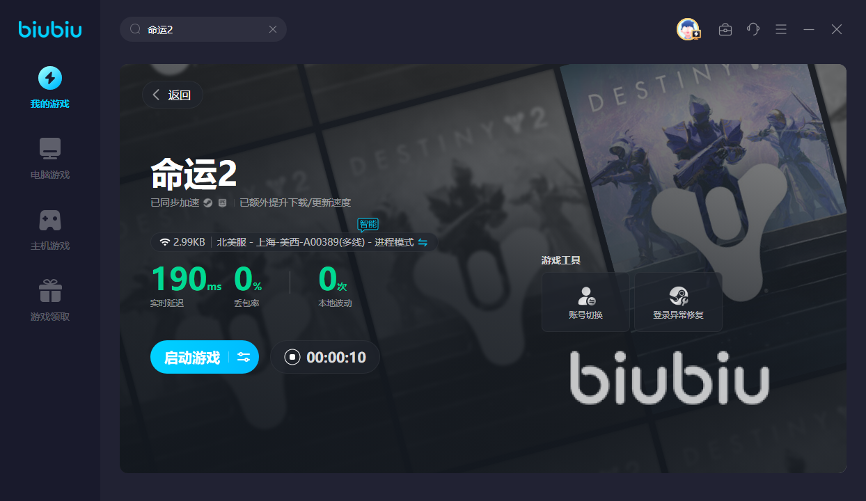 这次带来命运2加速器推荐,主要是为了让大家更好地在游戏里参与不同的模式。并且比赛中能够更加安逸地输出,这样才不会卡住或者掉线。毕竟作为一款热门的海外游戏,只有在biubiu的帮助下,才能让各位放心地游戏。