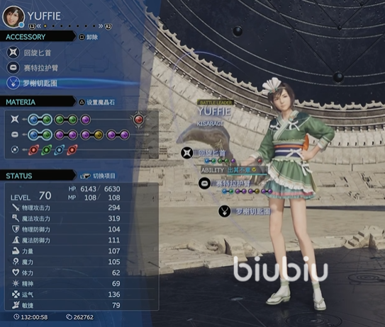 尤菲配装:范围化、护盾、复活、恢复、强化精准防御,先发制人、ATB增幅、提升HP、提升MP、招式高手、ATB连结、烈焰、延长获得的强化效果时间、提升最大HP+200、强化魔法防御;