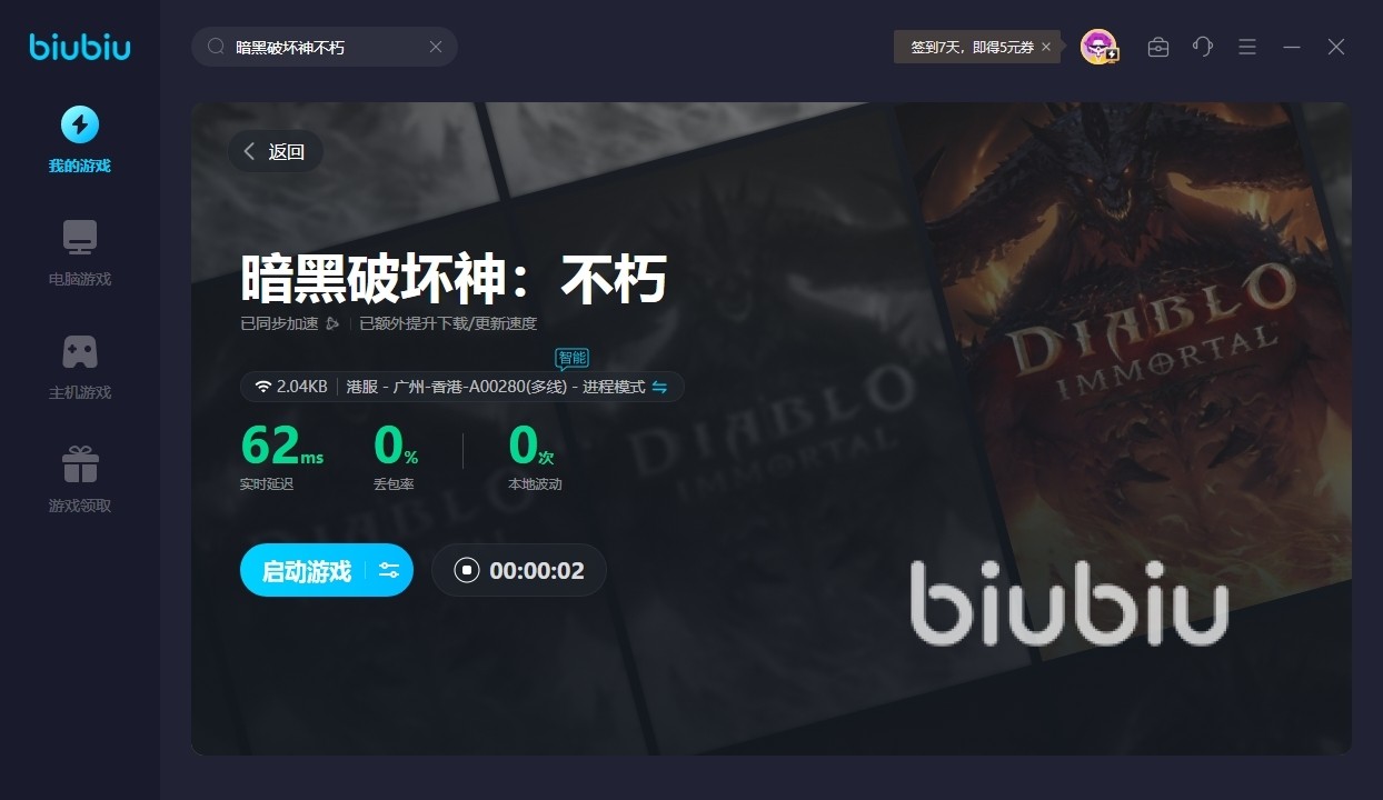 此外biubiu的使用方法也是非常简单的,我们可以直接在其首页搜索暗黑破坏神不朽就能找到相应的游戏,然后就可以开启一键加速。加速之后,玩家也可在此界面直接启动游戏,效率更高,点击详情界面,小伙伴们还能看到当前的加速状态,包括实时延迟率以及丢包率都可以更加直观的为玩家们展现,不想体验了,直接停止加速就可以了,不会有任何的影响,能够确保玩家在长时间的游戏体验过程中都能够享受最低延迟的网络环境。