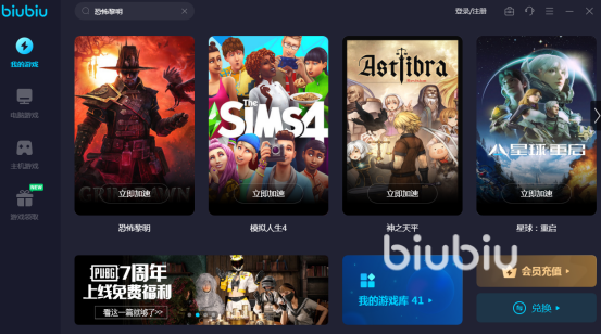 除了现在很多的玩家已经使用了biubiu加速器,体验了游戏加速所带来的众多优点以外,也有一些玩家还没有体验过。不过现在官方的福利就是值得每个玩家免费体验的,没有任何的费用就可享受游戏加速带来的快感。新用户可通过注册登录领取到官方赠送的24小时加速时长。也可通过兑换码biubiu不卡顿领取到三天的加速时长,兑换码的这种福利除了新用户可享受以外,老用户也是可享受的。