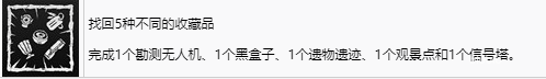 除了有这种比较危险的,需要战斗的机械兽之外,野外也是有不少遗迹可以进行探索的,总共有5大类,分别是勘测无人机,黑匣子,观景点,信号塔以及遗物遗迹,每个都收集一个,就可以拿到奖杯【找回5种不同的收藏品】。