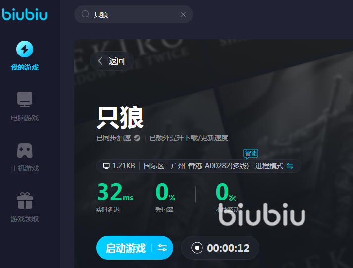 biubiu里有只狼主机版本跟电脑版本,加速主机游戏是免费的。想加速主机游戏大家除了充值会员外,也可以通过试用活动来享受免费加速,有新用户加速24小时的活动,也有兑换码【biubiu不卡顿】领取三天加速时长活动。这两个活动的加速时长都是免费的,而且第二个活动新老用户都能参加。