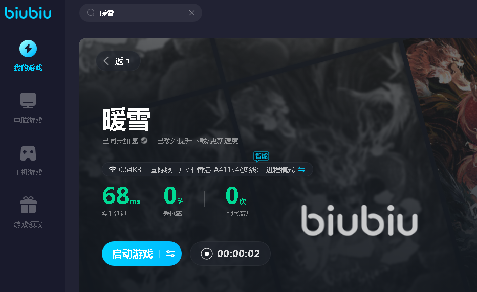 而在游戏体验过程中,一旦玩家的网络环境过差,那么我们就无法顺利完成更多挑战,在击杀boss的时候也容易会被boss一击致死,很难完成战斗,想要有效的解决问题,biubiu加速器是需要大家使用的,小伙伴们可直接使用上面的链接快速下载,下载之后首次注册可直接获取24小时免费会员加速时长。当然新老用户还可使用兑换码【biubiu不卡顿】解锁3天免费加速机会,玩家都是可以叠加使用的。这些加速时长可以帮助我们在这个侠客世界内更好地完成冒险,战斗也会变得更加轻松。如果是首次接触此类加速软件,不知道怎么操作也没有关系,它的操作界面简单明了,没有过多复杂的步骤,直接在首页搜索暖雪就可找到对应的游戏,一键开启加速,就能在其中书写自己的胜利了。