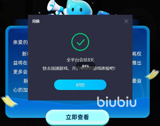 当看到有越来越多的玩家都容易在游戏的时候遇到网络问题的时候,官方还特意推出了免费赠送游戏加速时长这样的活动,可让每个玩家在有需要的时候体验一下。新用户直接注册登录,就能够获得24小时的游戏加速时长。新老用户可通过兑换码福利领取免费对游戏加速三天,玩家只需要正确输入兑换码【biubiu不卡顿】即可,没有注册过的用户利用如今的活动,一共可享受96个小时的免费加速时长。