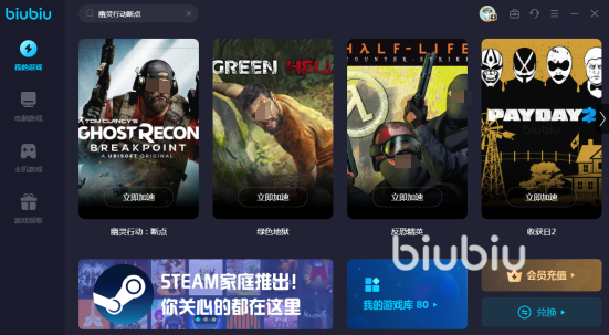 介绍的biubiu加速器完成下载以后可享受一键加速畅玩热门游戏这样的功能,热门网游全服加速,不管是国服还是国际服以及任何的区服,都可凭借着丰富的区服以及加速节点,智能优化选择好的网络,提供稳定加速,告别掉线掉帧等问题的功能。平时喜欢玩幽灵行动断点这种类型的,或者是喜欢玩各种吃鸡游戏能有效杜绝网络不好,对游戏造成的影响,也是很多玩家纷纷下载的。
