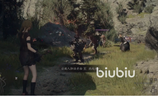 一共会遇到两群哥布林,第一波贾斯汀会在前面帮我们举盾牌,让我们可以释放法术或者远程射箭。第二波的时候,贾斯汀会被对方缠住,然后有一个举盾牌的哥布林战士会来找我们,我们需要让敌人胆怯并按E抱起敌人。我们这里以法师为例,我们先往后走,同时释放法术,攻击盾牌哥布林,将它血量打到一半以下后,就可以走过去抱起它,然后长按右键瞄准,将它扔向其他哥布林。之后跟着贾斯汀继续往营地方向跑,一旁还会有相关的教学,比如冲刺和体力消耗等等。