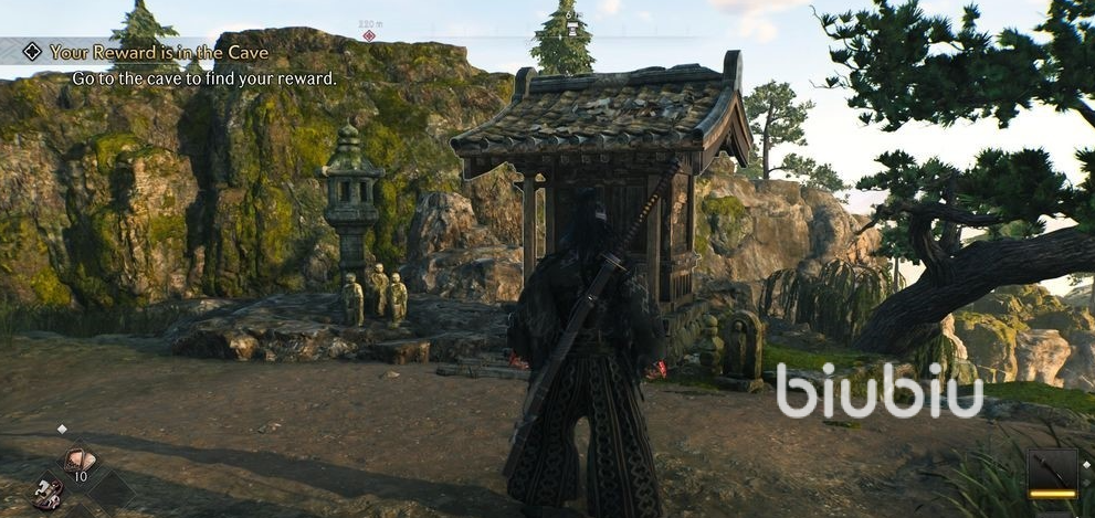在隐刀旗帜的下面就有一个神社,但是藏得比较隐蔽,需要爬下山崖才可以看到。
