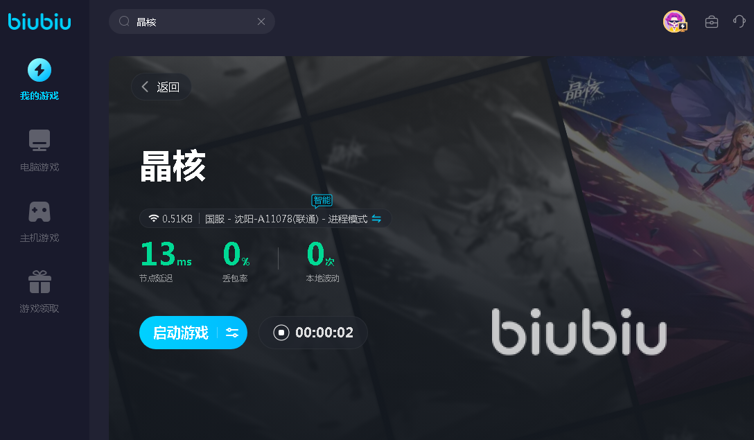 晶核游戏内玩家也是可以与好友进行联机,语音沟通可以更好的增加彼此的默契度,快速的完成更多战斗,当然如果网络不够好的话,就会出现连接失败或者是频繁掉线的情况, biubiu就能有效的解决这一问题,它能帮助大家大幅度降低游戏的延迟率,拥有电竞级别的加速线路,让玩家们都能以最稳定的网络环境去体验游戏,即便是在打boss的时候也能做到不掉链子。玩家只需要在首页搜索晶核即可找到相应的游戏,添加到游戏列表内,然后开启一键加速就可以了,加速完成之后,我们能够明显的感觉到延迟变低了。
