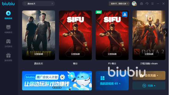 通过对这款游戏的了解就可知道,它属于两个玩家才能玩的。由于玩家被囚禁在一个小岛上,所以一定要找到逃生以及生存的方法,面对敌人的时候,也要及时的躲避追捕。在最初的时候晚间就要及时的寻找物资,包括石头、木材等。但如果在游戏的过程当中经常的卡顿,容易使玩家根本就没有办法收集到自己想要的物资,在与敌人作战的时候也容易被敌人攻击。biubiu加速器就是一款能够解决的应用,玩家可以点击上方推送的链接进行下载。